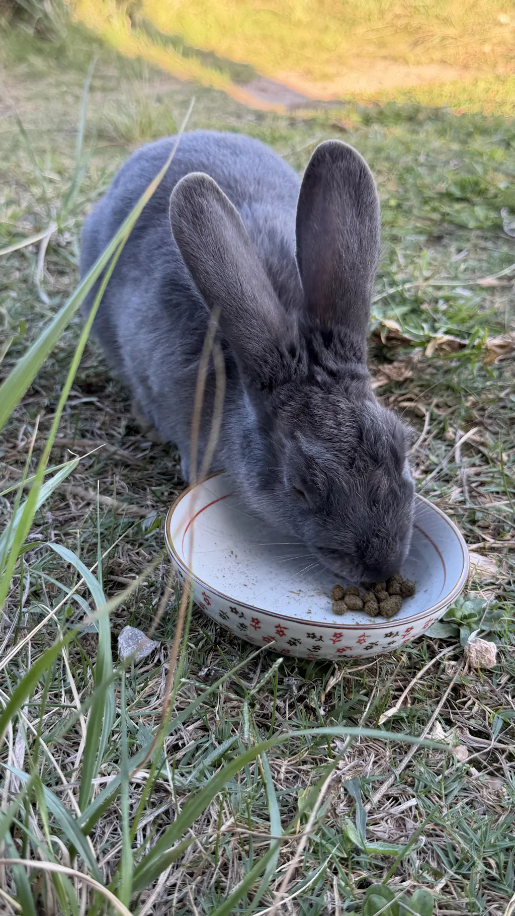 I have a “wild” domesticated lilac rabbit. I wanted to supplement what he was foraging and he took to it quickly. He comes by 2 times a day for his little helping! He seems to have more energy and binkies around after he’s eaten.