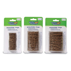 These natural rawhide treats are available in Small, Medium and Large sizes. • 16 Rawhide dog treats • Ingredients: Natural Rawhide, Sorbitol. Guaranteed Analysis: Crude Protein: 50% (min), Crude Fat: 4% (min), Crude Fiber: 1% (max), Moisture: 15% (max)