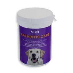 Medpet Arthritis Care is a nutritional aid to manage the symptoms of moderate to severe bone and joint conditions. High quality active ingredients utilized. Highly palatable. May be given as tablet or crushed and added to food. Cost effective May be given to all sizes of dogs and cats.