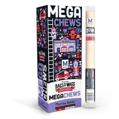 Highly nutritious, wagtastically delicious, NEW BAGS O’ WAGS Megachews are the super-sized treats dogs love to get and they’re big on fun and goodness! These 30cm-long treats ideal for larger dog breeds! A chewmungous bone, with a soft, meaty centre! Megachews are ideal as a delicious reward when training (or whenever)!