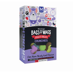 Montego Canine Bag O' Wags Marrow Bones are delectable beef flavoured marrow bones. Irresistibly delicious, wagtastically nutritious treats for deserving dogs. Ingredients Corn starch, chicken meal, water, glycerine, propylene glycol, sugars, chicken fat, wheat gluten, sodium phosphates, fish oil, carrageenan. Typical Analysis Crude protein - 20%; Moisture - 18.5%; Total fat - 5%; Crude fibre - 1%; Calcium - 1.2%; Phosphorus - 0.8%; Sugars - 4%; Metabolisable...
