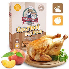 Chicken roasted to perfection and paired with sweet peach, just the way your granny used to make it. A wonderful treat for a Sunday afternoon, easing your pooch into the week.
