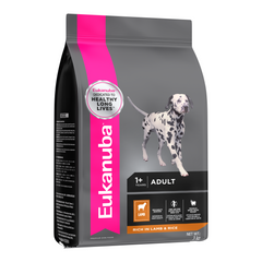 Eukanuba's Dog Food for Adult Large Breeds with a sensitive skin and stomach, recommended for large breed dogs. Formulated with prebiotics and beet pulp, Eukanuba Adult Dry Dog Food for Large Breeds rich in Lamb & Rice promotes digestive health and supports healthy joints. This canine food has high quality, animal-based proteins, to help maintain strong and lean muscles, and...