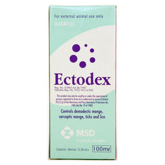 Ectodex is known as the gold standard for treating mange infestations. An emulsifiable concentrate containing Amitraz for dilution with water which treats Demodectic mange, Sarcoptic mange, ticks and lice in dogs. Dosage: Demodectic mange - Use 50ml of Ectodex in 5L of water. Repeat the treatment at 5-7 day intervals for a period of 3 weeks or until all overt...