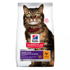 Hill's Science Plan SENSITIVE STOMACH & SKIN dry cat food provides optimal digestive health while nourishing skin & promoting lustrous fur. With added beet pulp, supports healthy digestion Highly digestible food that is gentle on the stomach Vitamin E & Omega-6 fatty acids for skin & fur nourishment Additional info: At Hill’s, we study pets’ biology to understand how nutrition...