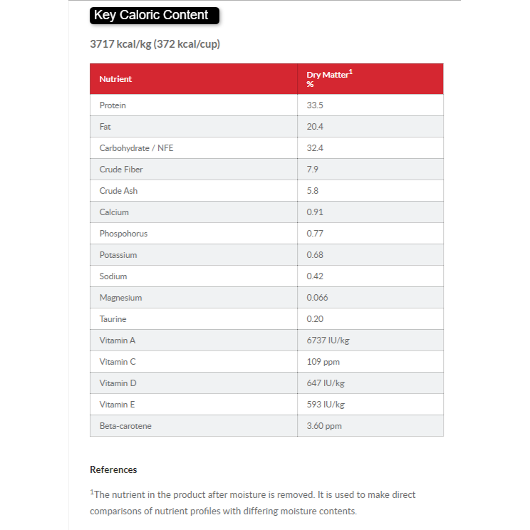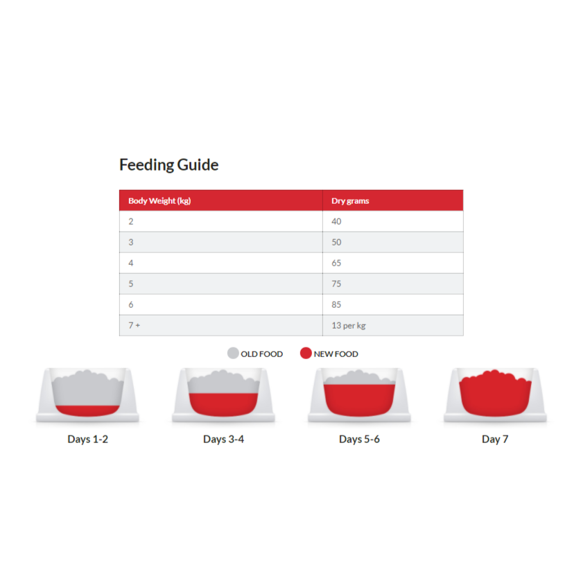 Chicken (minimum Chicken 43%, Chicken and Turkey combined 58%): Chicken and turkey meal, ground rice, ground maize, maize gluten meal, cellulose, animal fat, vegetable oil, digest, potassium chloride, calcium sulphate, dicalcium phosphate, salt, DL-methionine, taurine, vitamins and trace elements. Naturally preserved with mixed tocopherols, citric acid and rosemary extract.